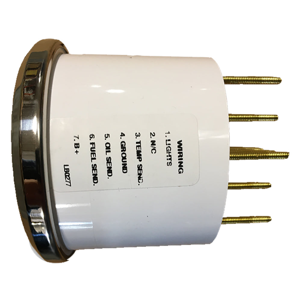 - Operating Range - Fuel (e - 1/2 - F), Volt (10 to 16 V), Oil (0 to 80 PSI) and Water Temp (120° to 220°F)