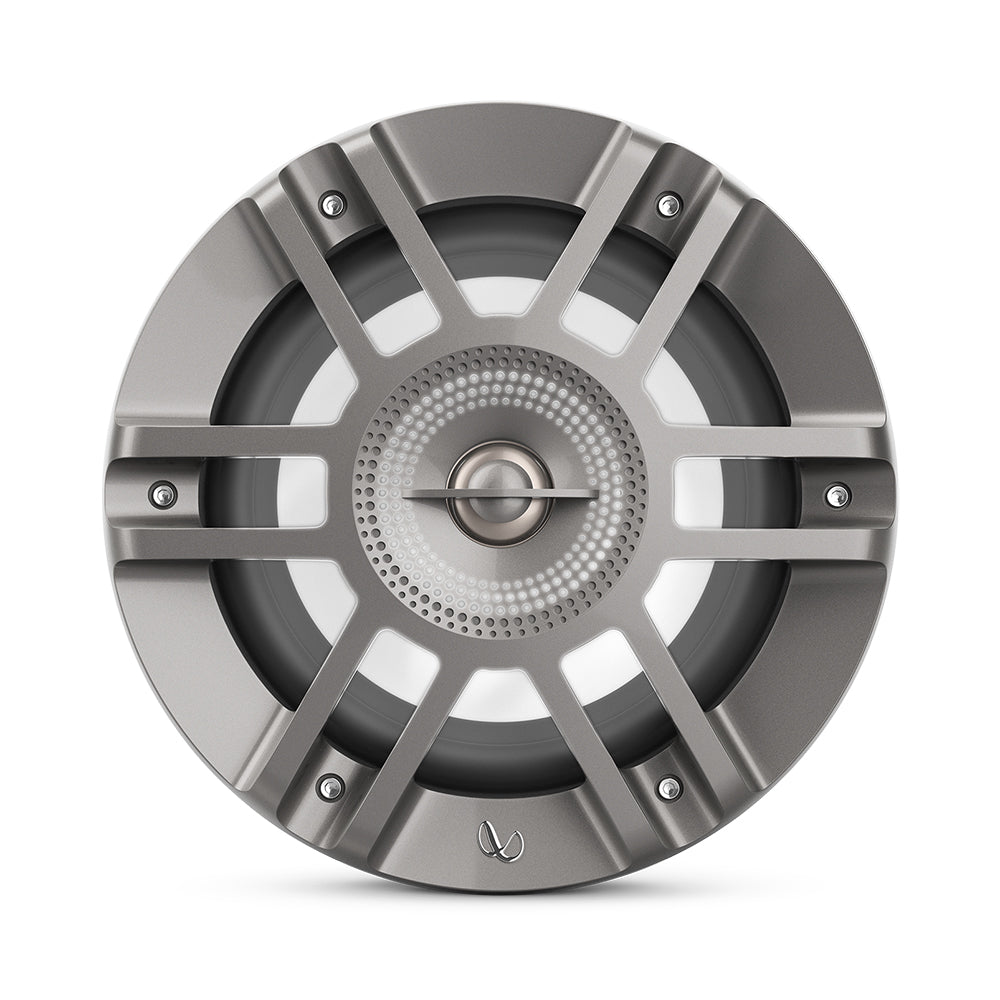 - Two 2-way marine speakers with fixed Titanium/Gunmetal polymer grilles