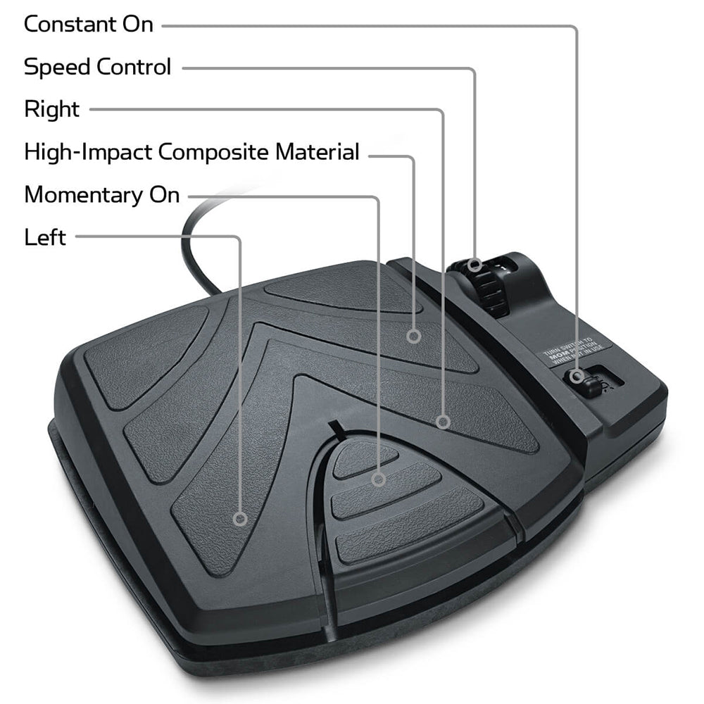 Control speed, steering, and momentary and constant on/off with the newly redesigned, robust foot pedal. Includes 18' cord.