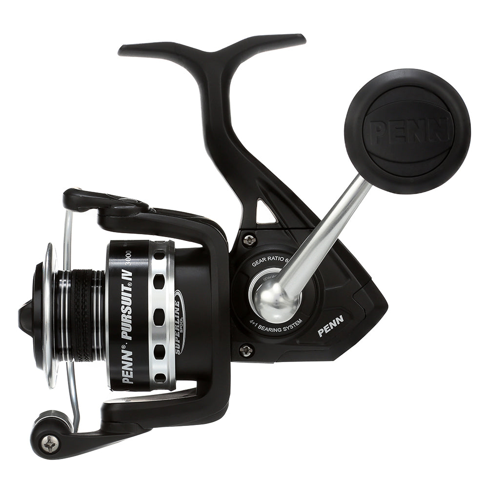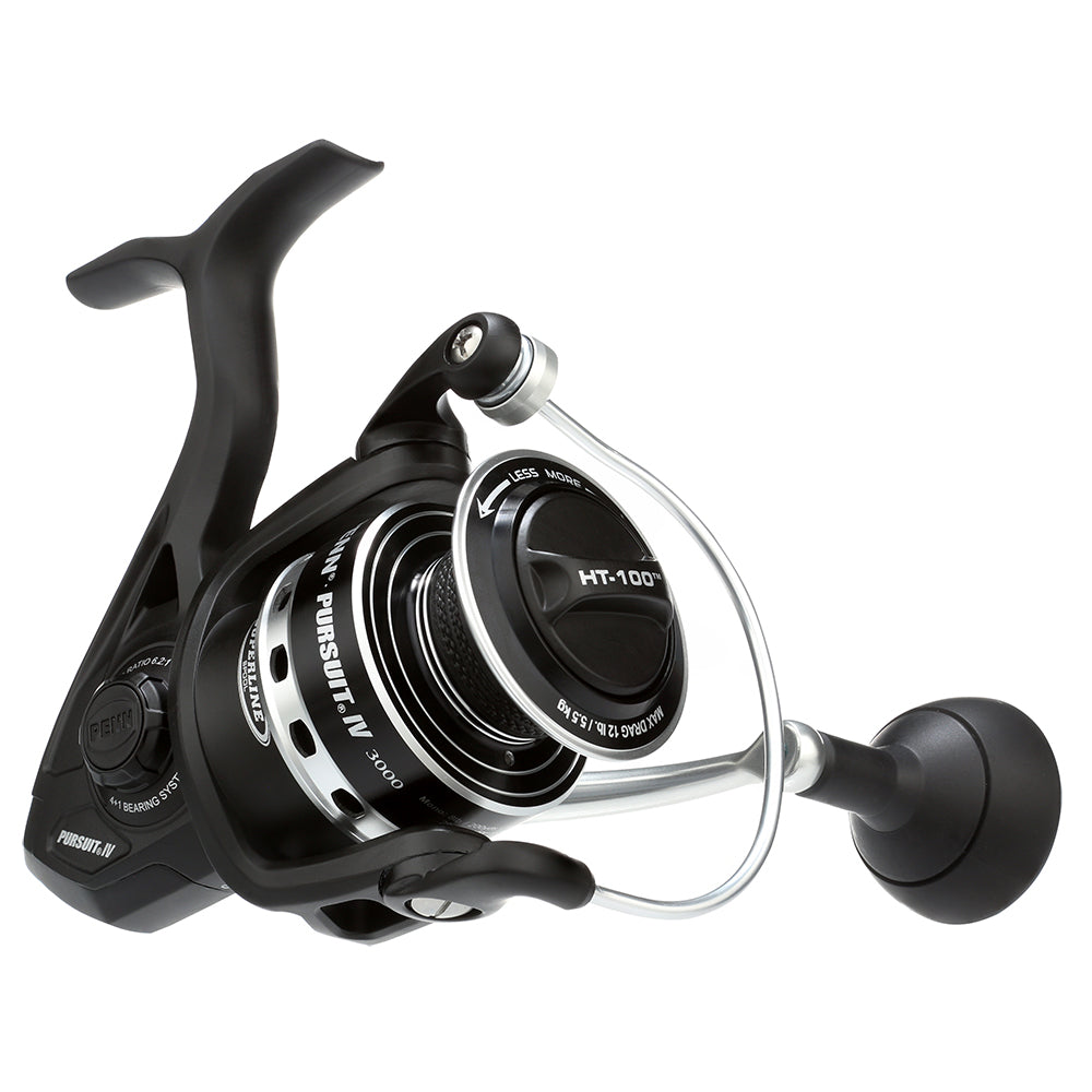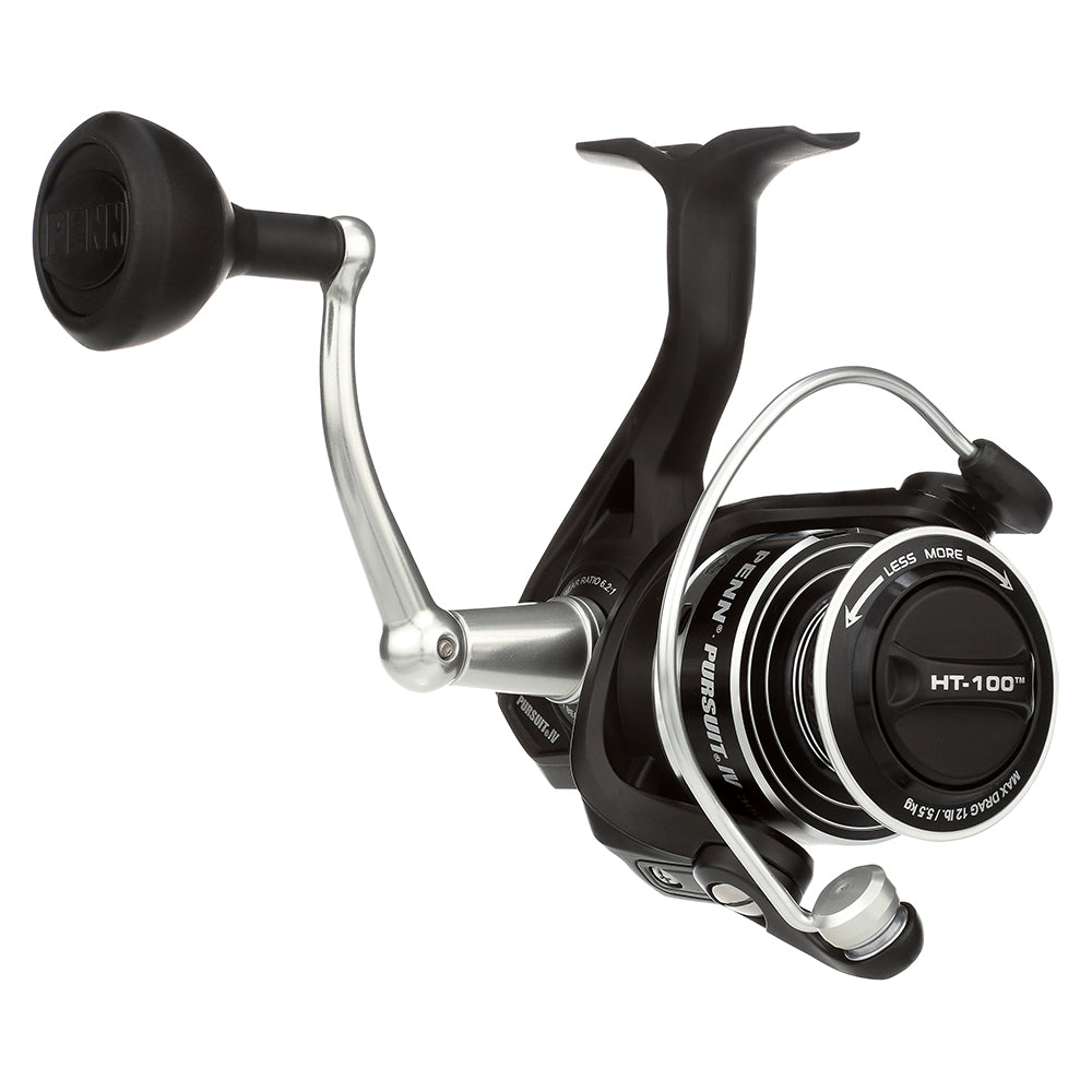 The PENN® Pursuit® IV features durable construction and the smooth gear system anglers expect from PENN®. This reel features an ultra-lightweight, corrosion-resistant graphite body and powerful HT-100™ drag system making the Pursuit® IV a great value for the money for saltwater anglers. Available in six sizes from 2500 to 8000, the Pursuit® IV has a reel for most fisheries. The Instant Anti-Reverse bearing eliminates even the slightest rotor back play for instant hook-ups every time, while the 4 sealed stainless steel ball bearings provide smooth retrieves.