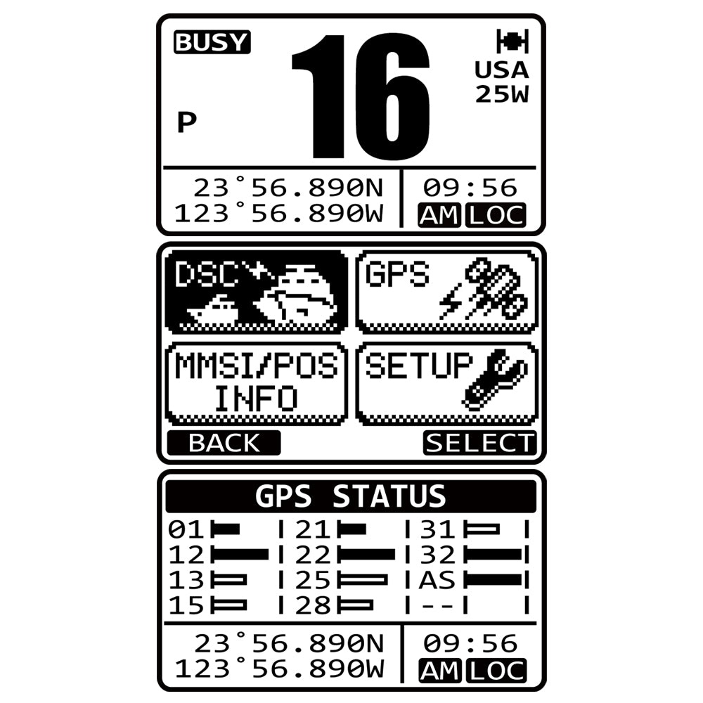 The GX1400G makes DSC easy. With an internal 66 Channel GPS built into the front panel, there is no need to hassle with wiring the radio to a GPS for DSC. Out of the box and ready to go, DSC calling, position sharing, waypoint navigation, navigation to DSC distress calls can all be performed with just a few simple steps.